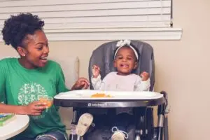 - “Are you feeling hungry? Let’s get you into your chair so you can eat. I’m going to pick you up and put you in your chair. Ready? 1, 2,