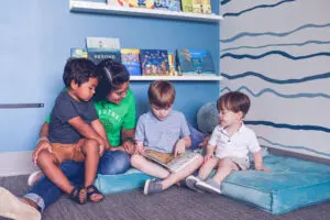 Research has shown that most toddlers and preschool children don’t pay attention to printed text unless they are encouraged to do so by the person reading the book. Simply by pointing to the text (“print referencing”) while we read a book, we can reverse that trend and get children interested in just what those black lines and squiggles on the page actually mean.