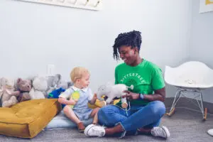 Provide richer dialogue, narrate frequently, and ask more questions, even those that can be responded to non-verbally. By assuming a greater degree of comprehension, your child’s language development will benefit.