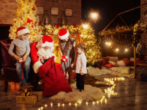 For a personalized and elegant photo experience, Ash Nichole Photos offers “Santa Visits My Elegant Christmas Studio Mini Sessions.” These sessions provide a classy, high-quality setting for capturing moments with Santa.